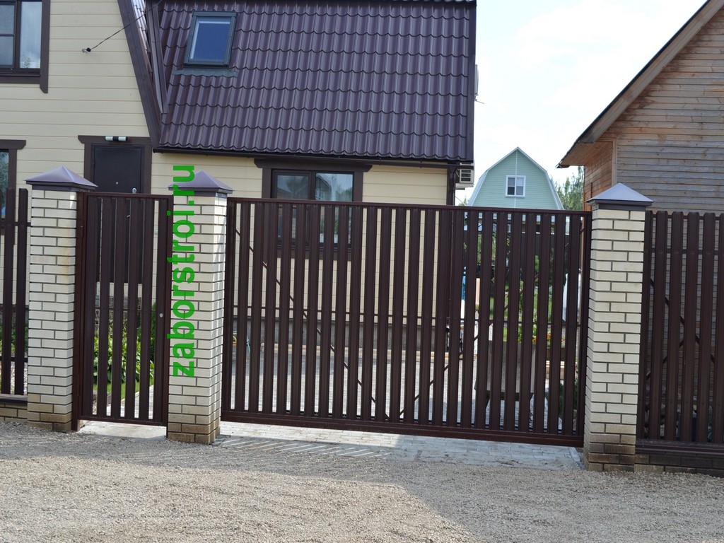 Откатные ворота из евроштакетника пример 10