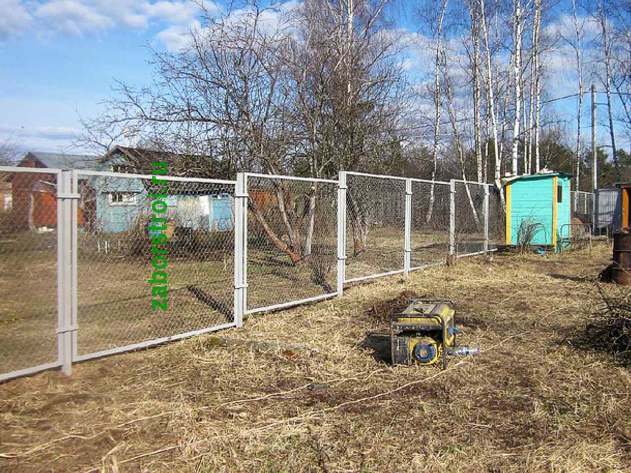 Заборы из сетки рабица в секциях из профиля 58 метров